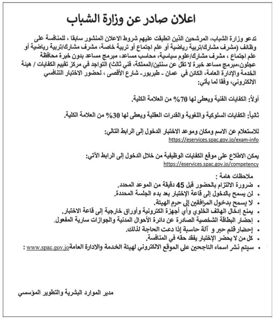 المؤسسة : وزارة الشباب موقغ : اضغط هنا بريد :
